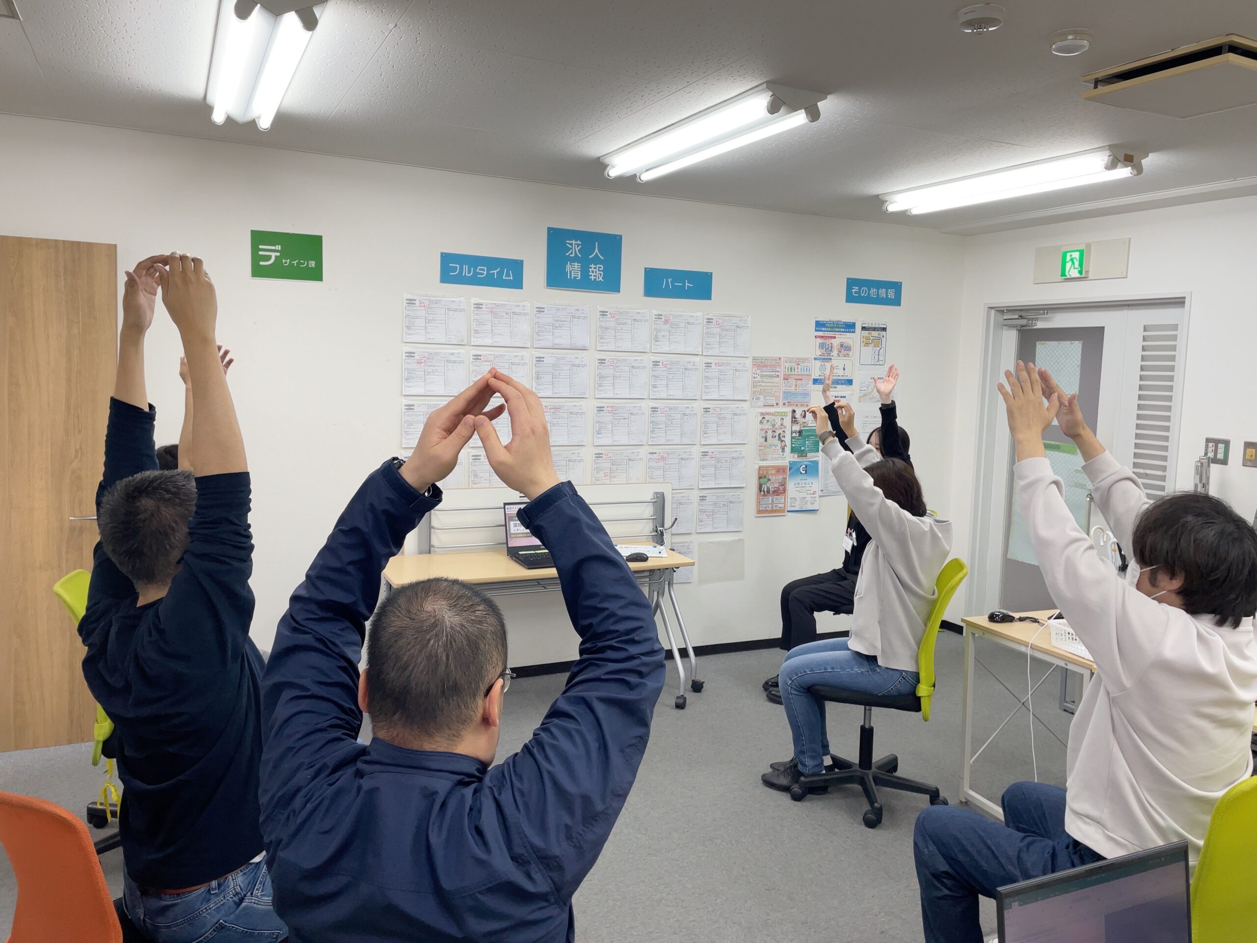 事業所内にてストレッチを実施。
