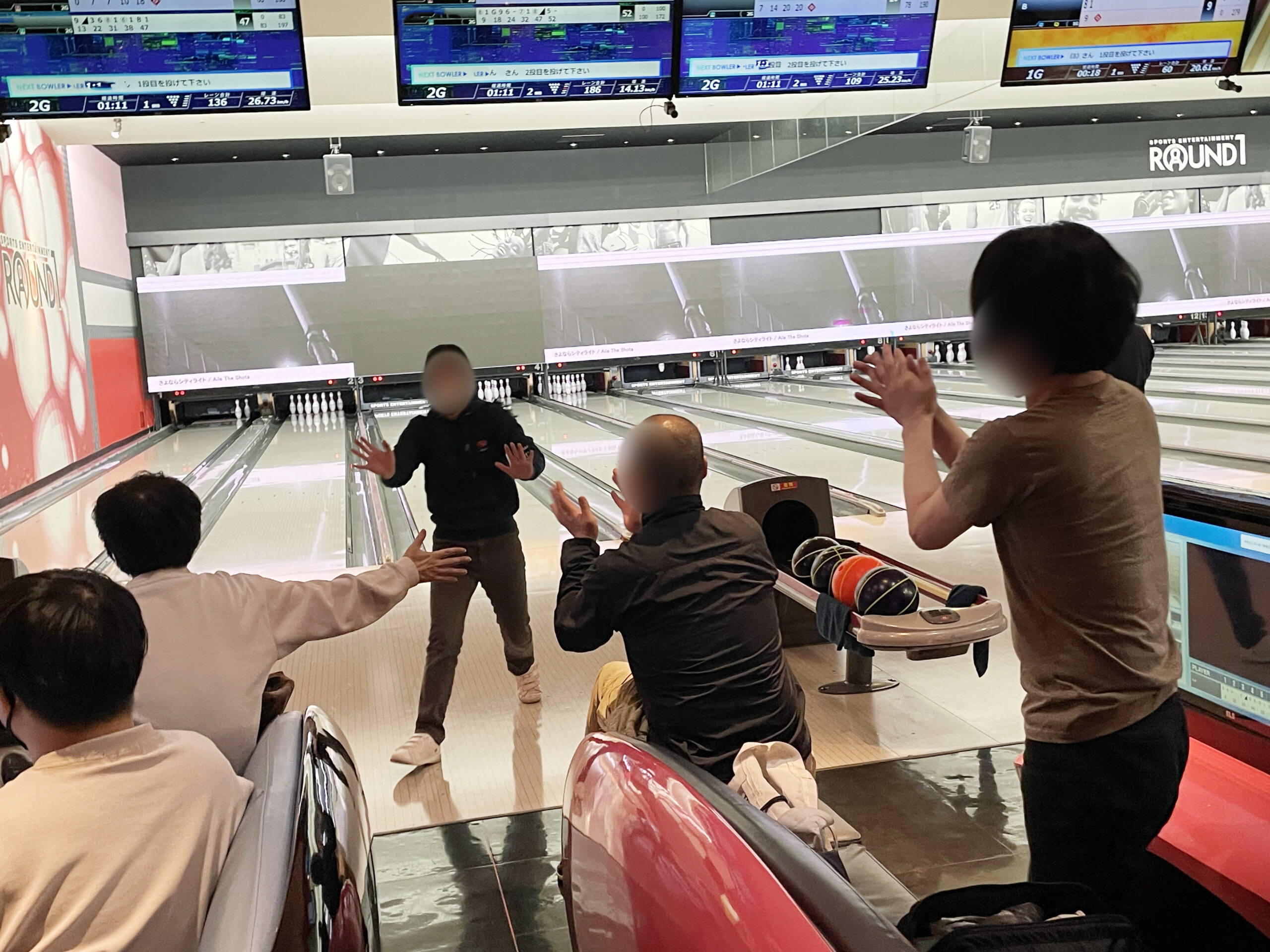 熱戦が繰り広げられ、ピンの転がる音とともに歓声があがっていました!